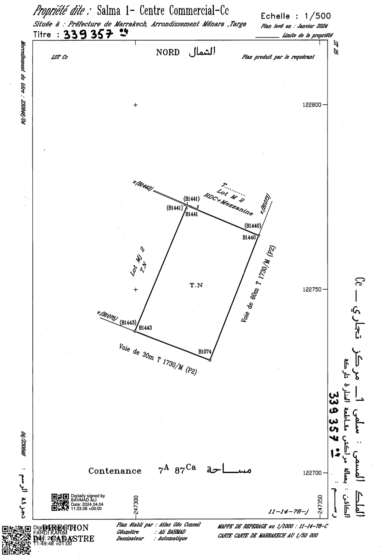 À vendre terrain situé à Zohor Targa, d’une superficie de 787 m², pour un projet de centre commercial R+2 avec sous-sol ou tout autre projet immobilier à vocation commerciale ou mixte.