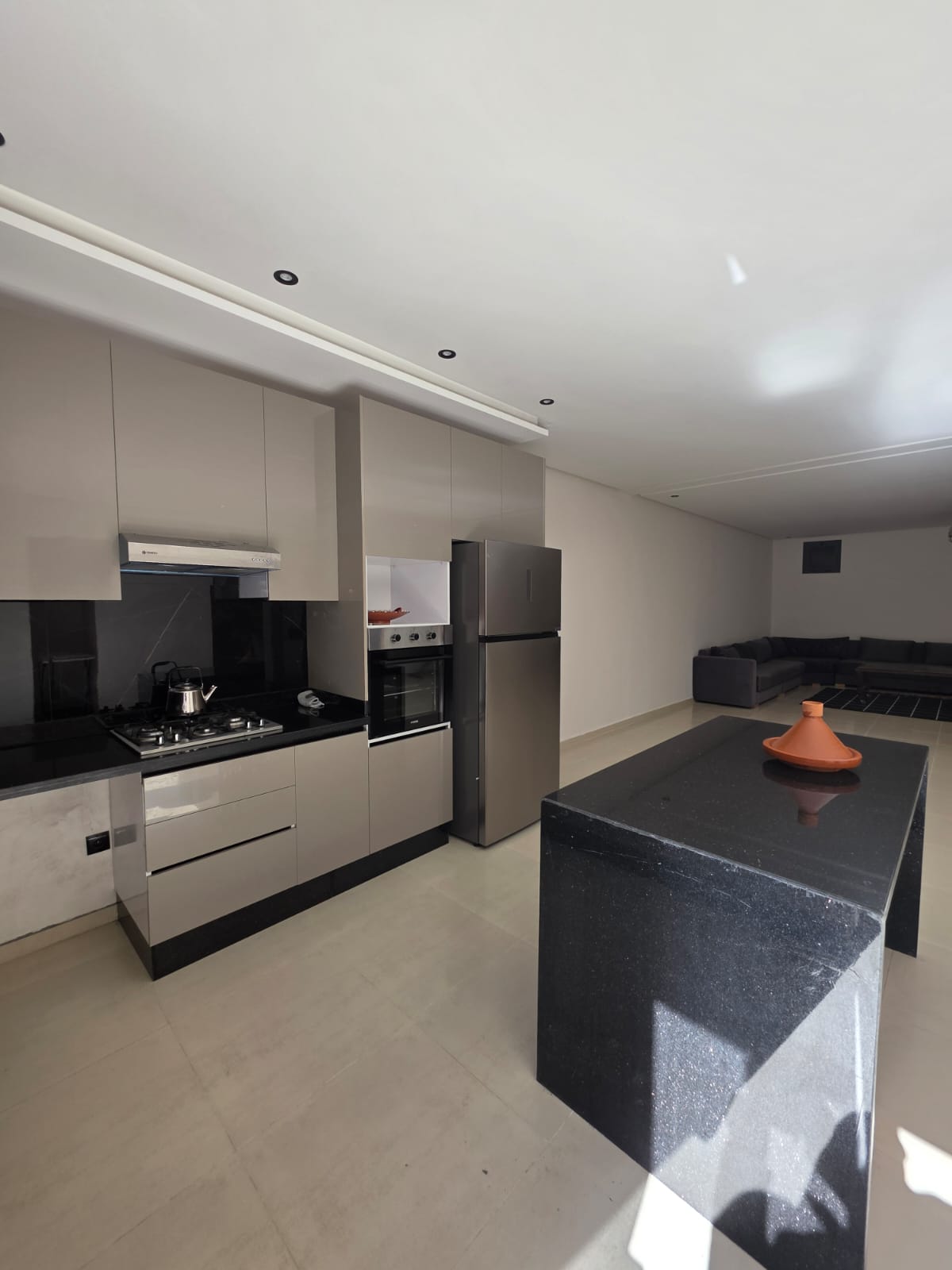 Grande cuisine avec cour anglaise, grand salon, buanderie, chambre pour le personnel avec salle de bain.