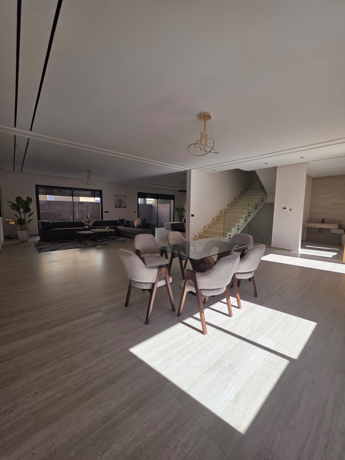 Salon-séjour donnant sur une petite piscine, salle à manger, salle de bain invités. - 1er étage :